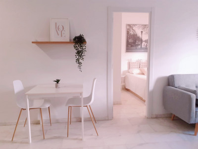 Luminoso y moderno salón-comedor. Cocina completamente equipada con electrodomésticos (horno, vitrocerámica, nevera, lavadora y lavavajillas) Un dormitorio con cama de matrimonio y armario empotrado. Un baño íntegro con bañera.