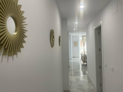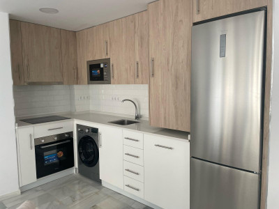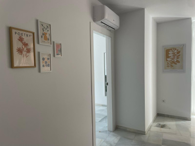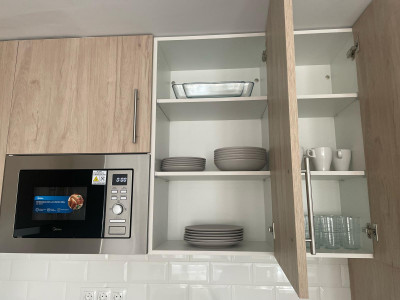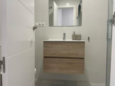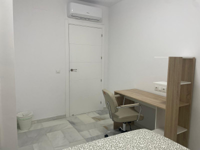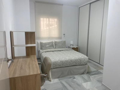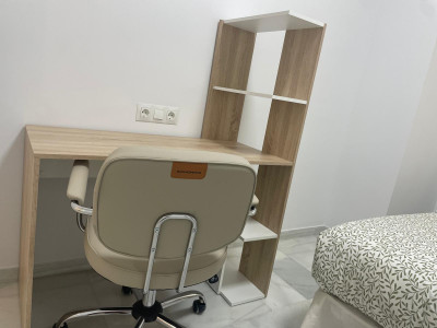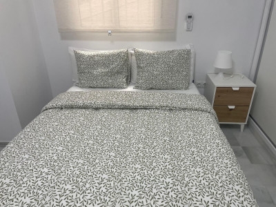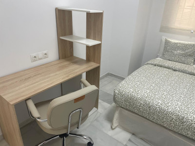 Amplio salón-comedor con televisión y balcón. Cocina americana completamente equipada con electrodomésticos (horno, microondas, vitrocerámica, nevera, lavadora-secadora, lavavajillas y menaje). Tres dormitorios, de los cuales disponible UNA habitación con cama de matrimonio, colchón de las mejores calidades, almohada viscoelástica, edredón, mesita de noche con lamparita, gran armario empotrado, escritorio con silla ergonómica. Espejo y papelera. Un baño íntegro con plato de ducha con mampara y efecto lluvia.