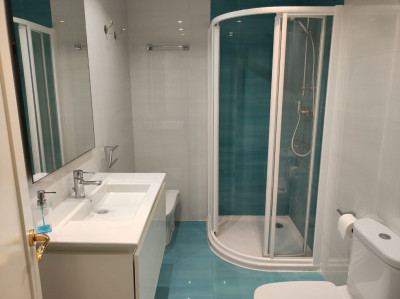 Luminoso salón-comedor. Cocina completamente equipada con todos los electrodomésticos (horno, microondas, vitrocerámica, nevera, lavadora y lavavajillas). Calentador eléctrico. Tres dormitorios, el principal con cama de matrimonio, uno con cama individual, y el otro para poder amueblarlo a su manera. Un baño íntegro con ducha.
