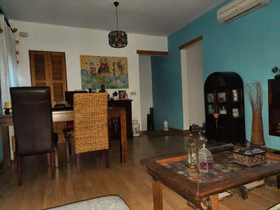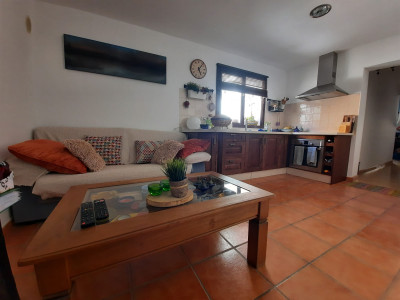 Amplio salón-comedor con TV. Un baño íntegro con bañera. Gran terraza con sofá, y mesa y sillas.