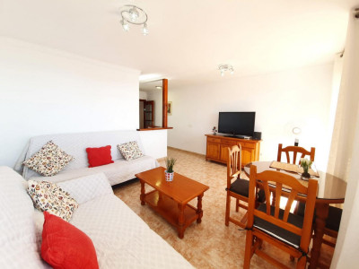 Luminoso salón-comedor con televisión de 55 pulgadas, 2 sofás, y uno de ellos es sofá-cama. Cocina completamente equipada con microondas, vitrocerámica, nevera, lavadora, cafetera eléctrica, hervidor de agua, plancha, secadora, sombrilla de playa y nevera de playa. Un dormitorio con cama de matrimonio y armario empotrado. Un baño íntegro con bañera.