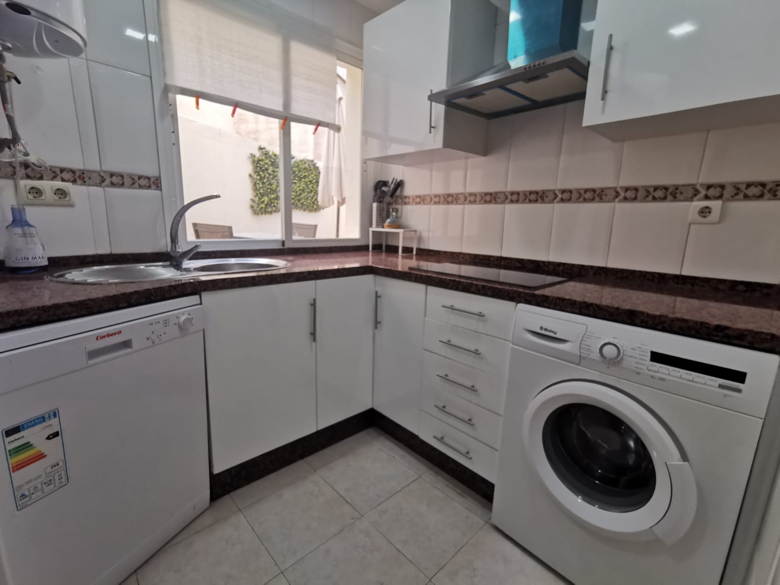 Luminoso y amplio salón-comedor. Cocina completamente equipada con electrodomésticos (microondas, vitrocerámica, nevera, lavadora y lavavajillas). Un dormitorio con cama de matrimonio y armario empotrado. Un baño íntegro con plato de ducha.