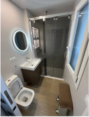 Luminoso salón-comedor con Tv. Cocina americana completamente equipada con horno, vitrocerámica y nevera. Dispone de dos cuartos de baños completo con plato de ducha. Consta de un amplio dormitorio con armario empotrado.