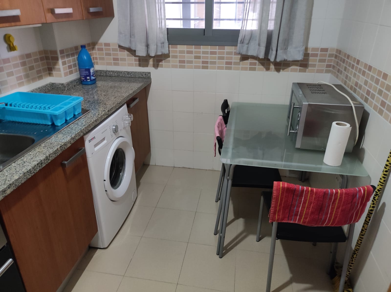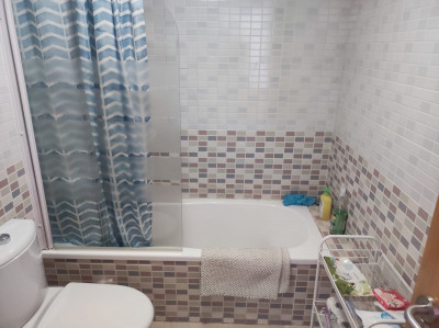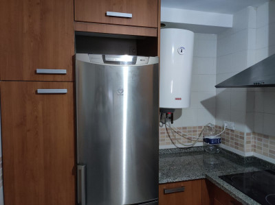Luminoso salón-comedor. Cocina completamente equipada con horno, microondas, vitrocerámica, nevera, lavadora y termo eléctrico. Dos dormitorios, uno con cama de matrimonio y armario empotrado y otro vacío con armario empotrado. Baño íntegro con bañera.