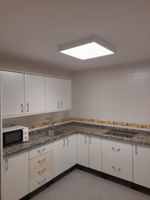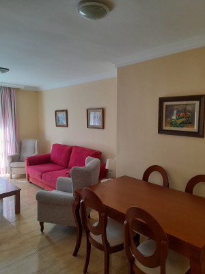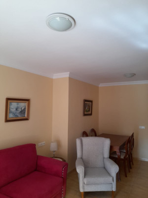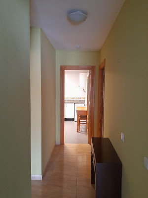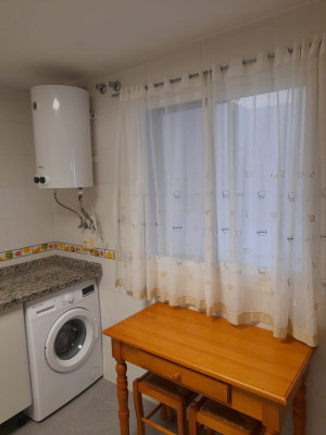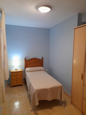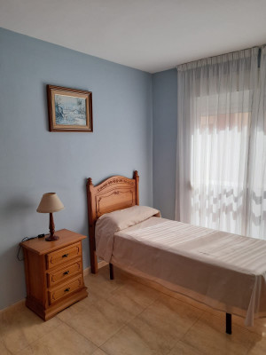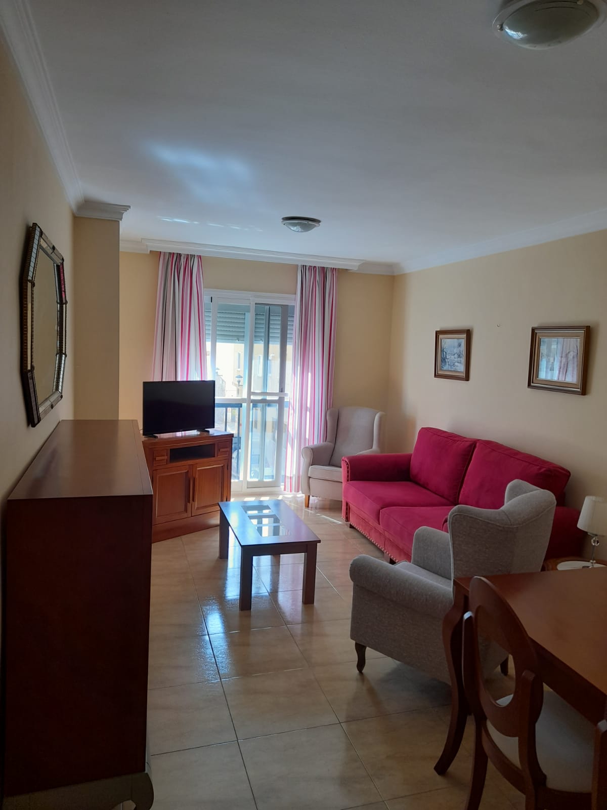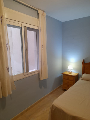 Luminoso salón-comedor con TV. Amplia cocina completamente equipada (microondas, vitrocerámica, nevera, lavadora). Dos dormitorios, cada uno con cama individual y armarios. Baño íntegro con ducha.