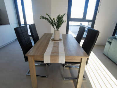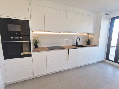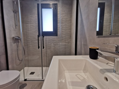 Esta magnífica vivienda-ático cuenta con un amplio salón-comedor con TV y una cocina abierta completamente equipada con electrodomésticos a estrenar: horno, microondas, vitrocerámica, nevera, lavadora y lavavajillas integrados. La distribución incluye dos dormitorios con armarios empotrados (uno con cama doble y otro flexible para usar como vestidor, segunda habitación o despacho) y dos baños completos, uno en suite, ambos con ducha.