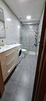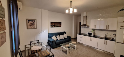 Un dormitorio con cama de matrimonio y armario. Salón-comedor amplio con TV. Cocina americana equipada con nevera, lavadora y vitrocerámica. Baño íntegro con ducha y lavadora. Aire acondicionado frío-calor, en salón y dormitorio.