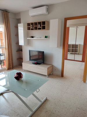 Luminoso salón-comedor. Cocina completamente equipada con microondas, vitrocerámica, nevera y lavadora. Tres dormitorio, dos con cama de matrimonio, y la otra habitación está adaptada de oficina. Baño íntegro con ducha.
