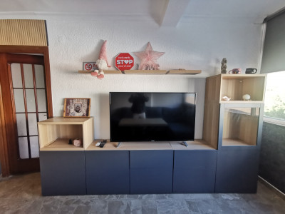 Amplio y luminoso salón con TV. Cocina completamente equipada con microondas, vitrocerámica, nevera y lavadora. Tres dormitorios con una cama de matrimonio, y las otras dos habitaciones con camas individuales y armarios empotrados. Baño íntegro con ducha.