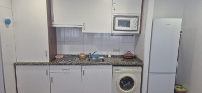 Luminoso salón-comedor con TV y cama de matrimonio. Cocina completamente equipada con lavadora, nevera, vitrocerámica y microondas. Un baño íntegro con ducha.