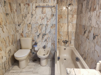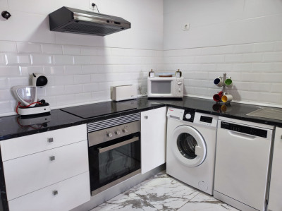 Amplio y luminoso salón-comedor con TV. Cocina abierta completamente equipada con electrodomésticos (horno, microondas, vitrocerámica, nevera y lavadora). Dos dormitorios, el principal con baño in-suite y un gran armario empotrado, y la otra habitación con cama individual. Consta de un baño íntegro con bañera y un aseo.