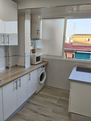 Luminoso, amplio y moderno salón-comedor. Cocina completamente equipada con electrodomésticos (microondas, vitrocerámica, nevera, lavadora y menaje). El dormitorio cuenta con una cama individual con armario y un escritorio. Baño íntegro con ducha.